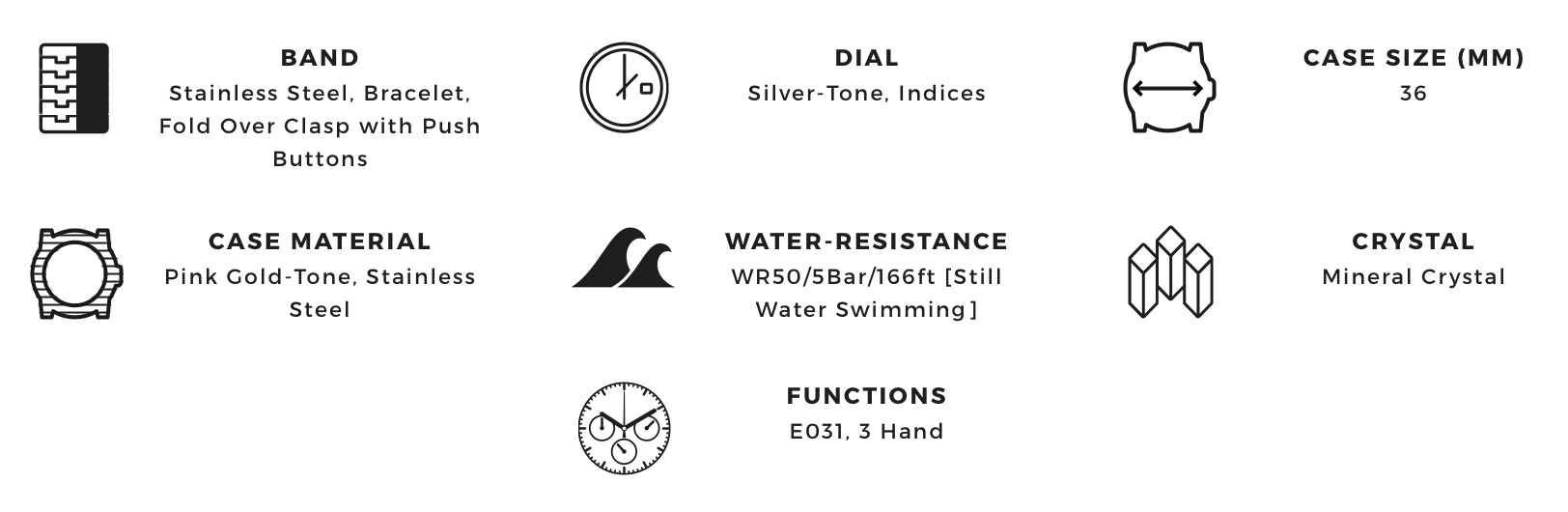 Enlightened by the active woman, the CITIZEN Modena was designed to fit her lifestyle from work to play and everything in between. A modern casual styling with Eco-Drive Technology, powering the watch for a lifetime by any light. Featured in pink gold-tone stainless steel with a brilliant silver-tone dial. Caliber number E031.