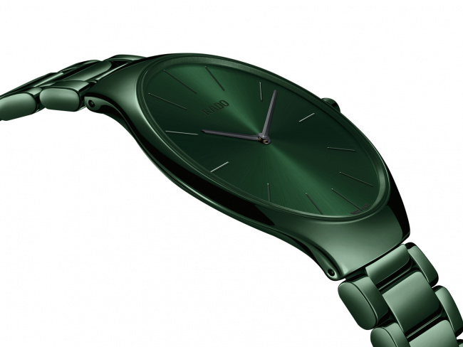 Years of research culminated in the True Thinline’s groundbreaking monobloc ceramic case – a never-before-seen type of case construction featuring solid ceramic with no need for a stainless steel core. This not only gave the True Thinline its extreme lightness and super slim silhouette, but it also paved the way for new design possibilities in the Rado collection.